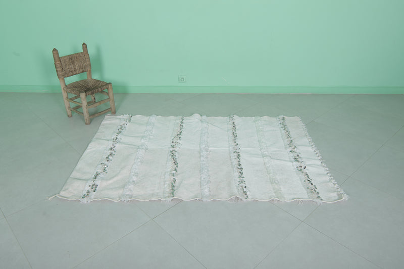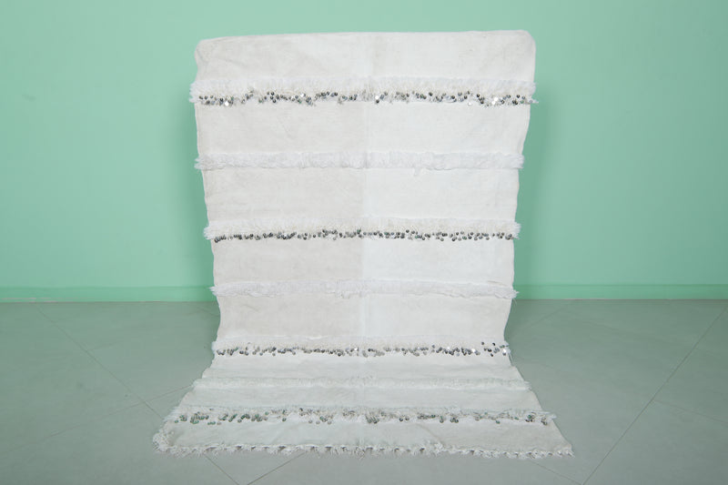 White Berber Wedding Blanket 3.8 x 5.9 ft | Handwoven Moroccan Textile