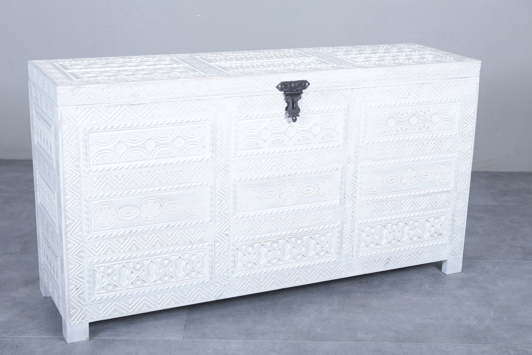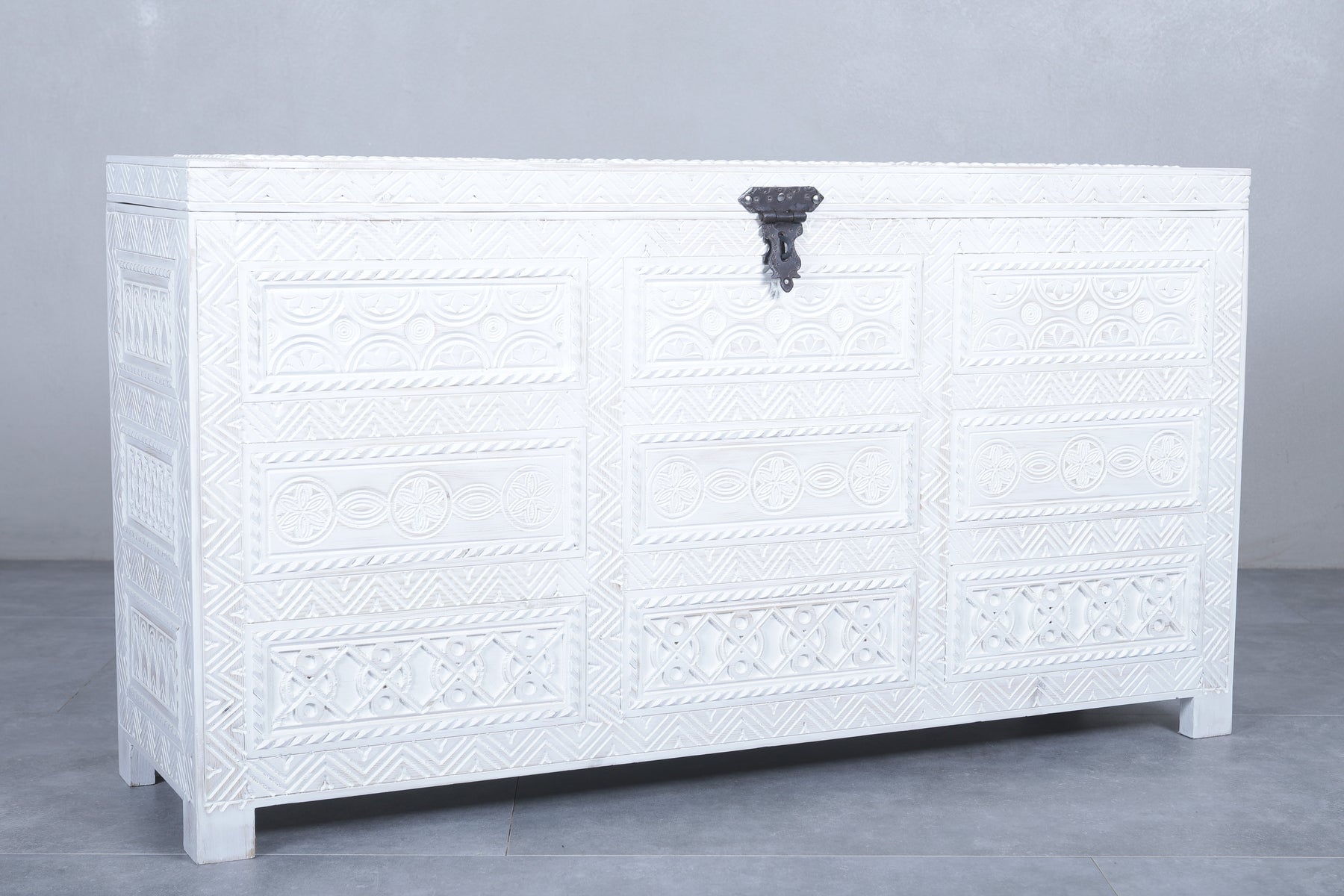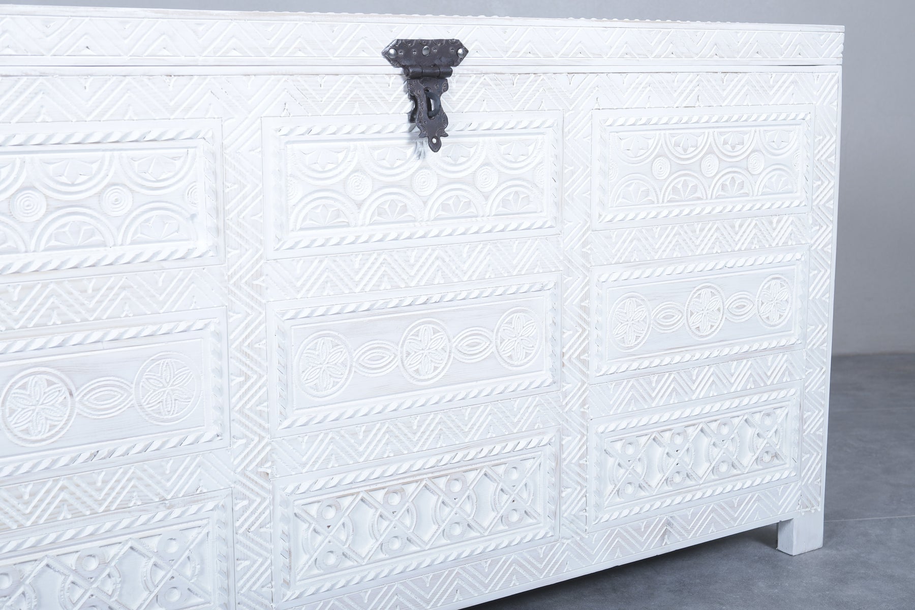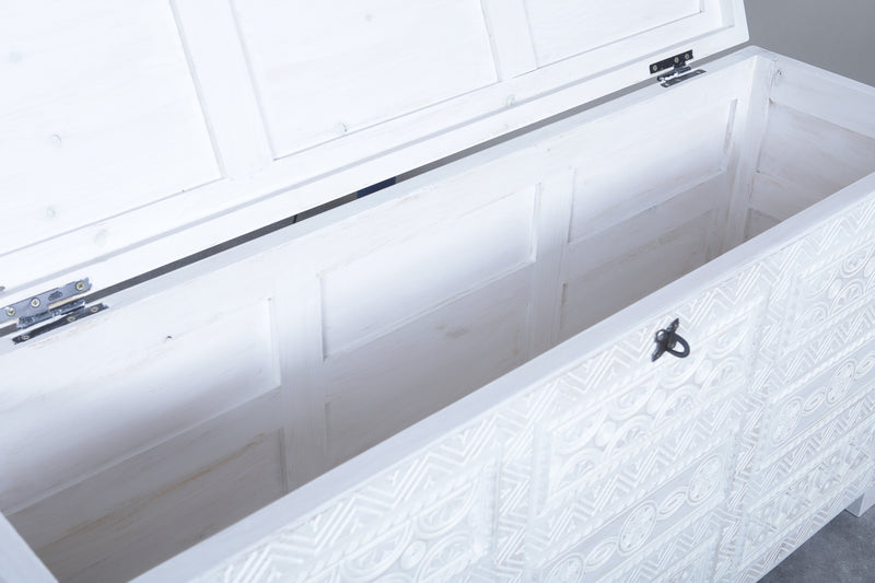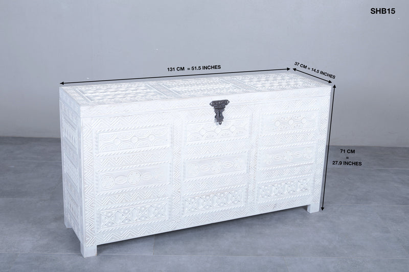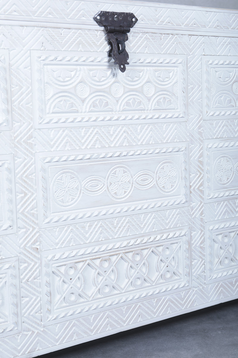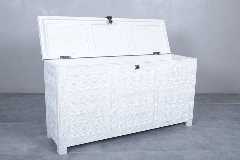 White Custom Moroccan trunk - Handmade Berber Wooden trunk