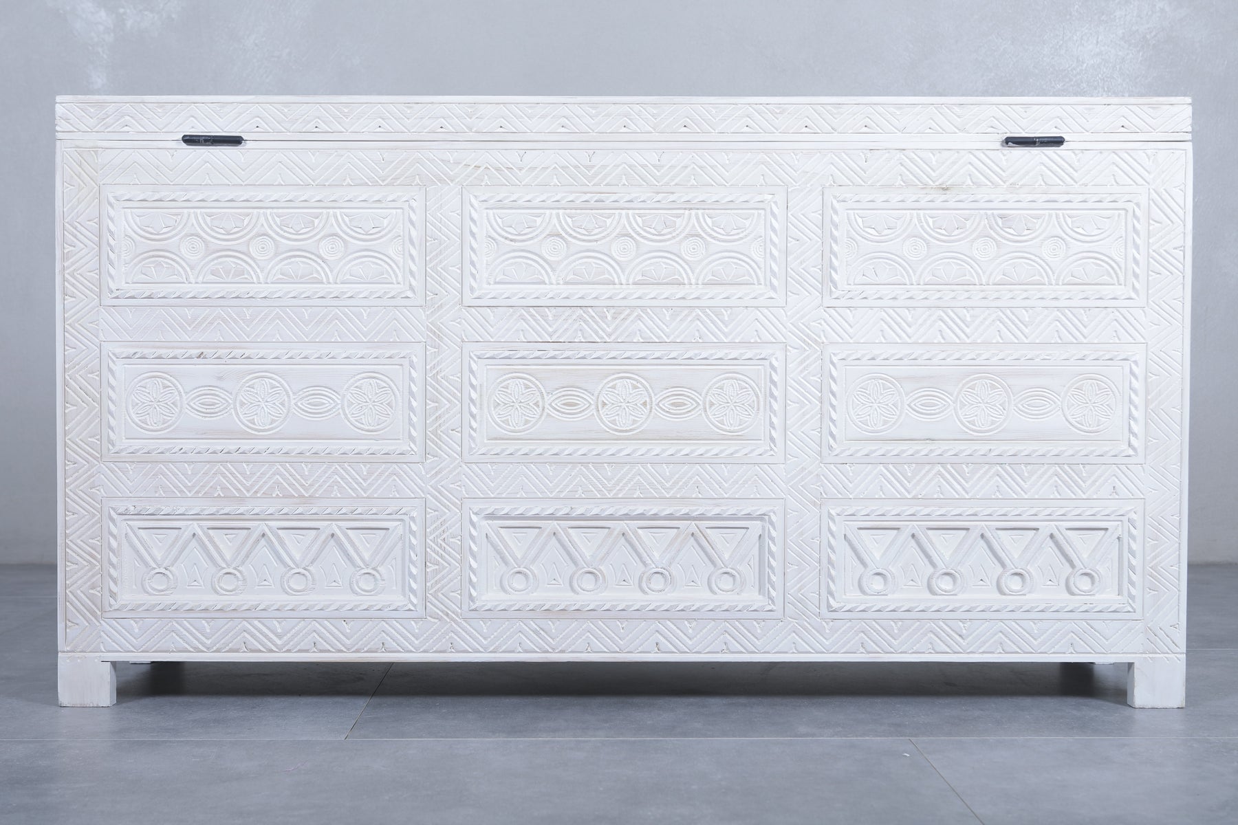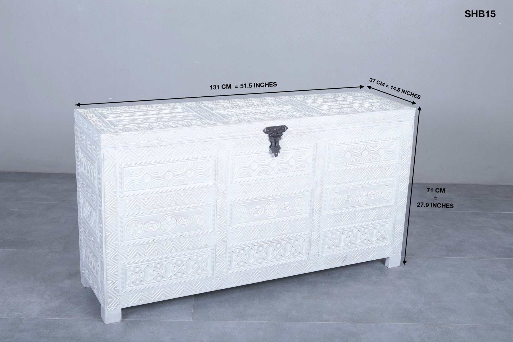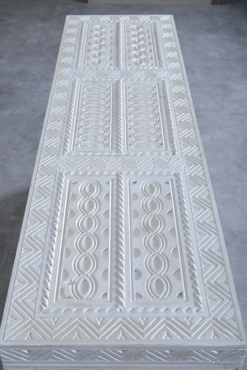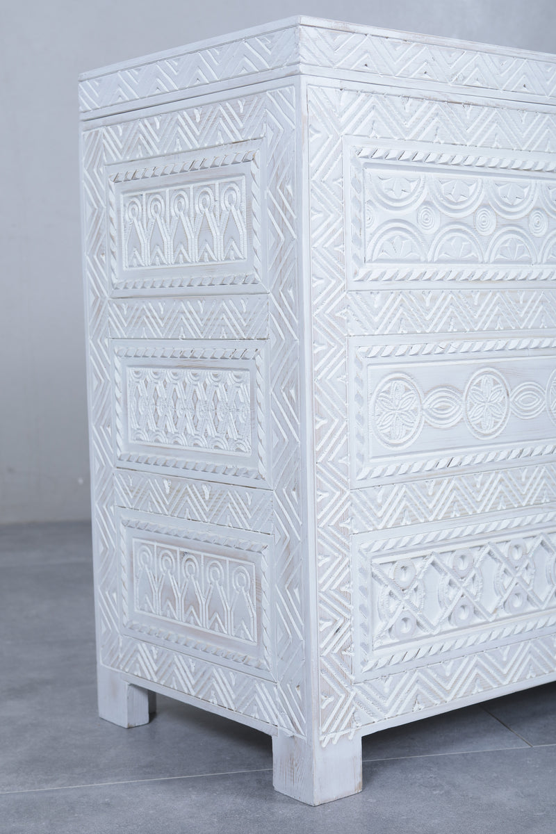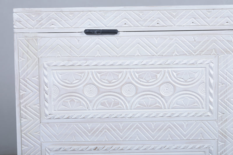 Expertly crafted by hand, our White Custom Moroccan trunk is a stunning addition to any space. Made with traditional Berber techniques, this wooden trunk showcases the artisanal skill of the region. Enjoy the unique charm and quality of a truly handmade piece.