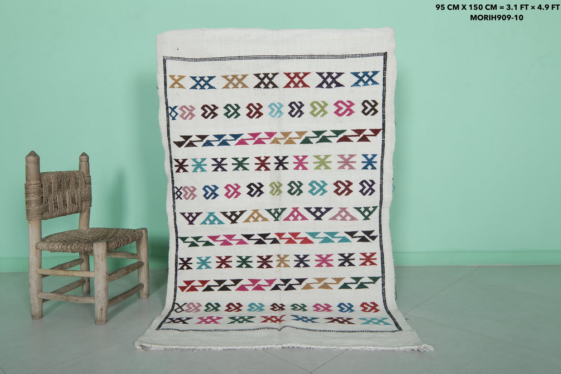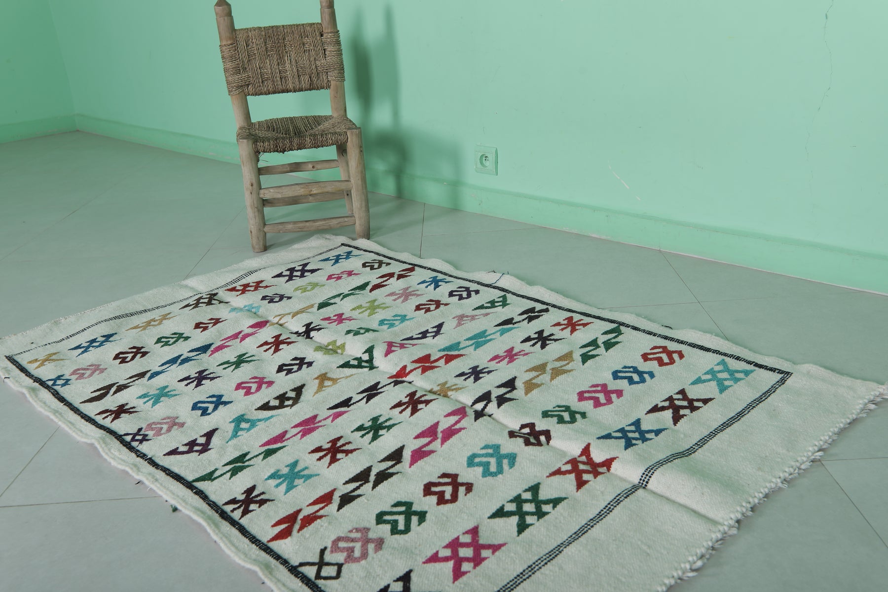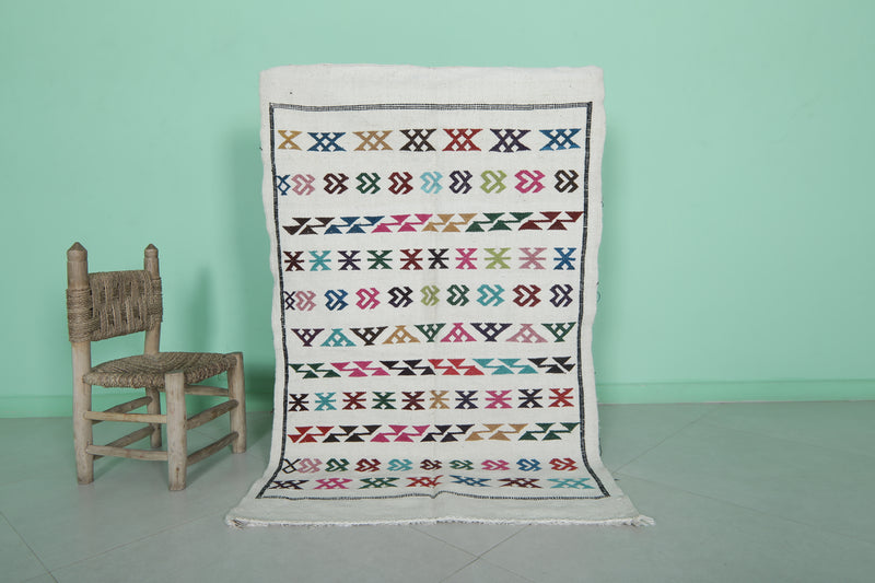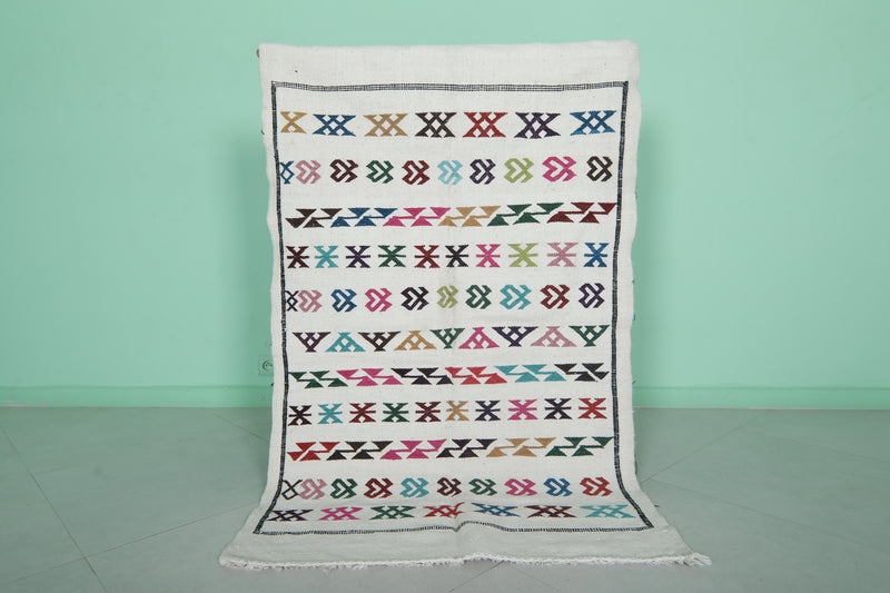 White Moroccan Rug - Handwoven Colorful Patterns - 3.1x4.9 ft