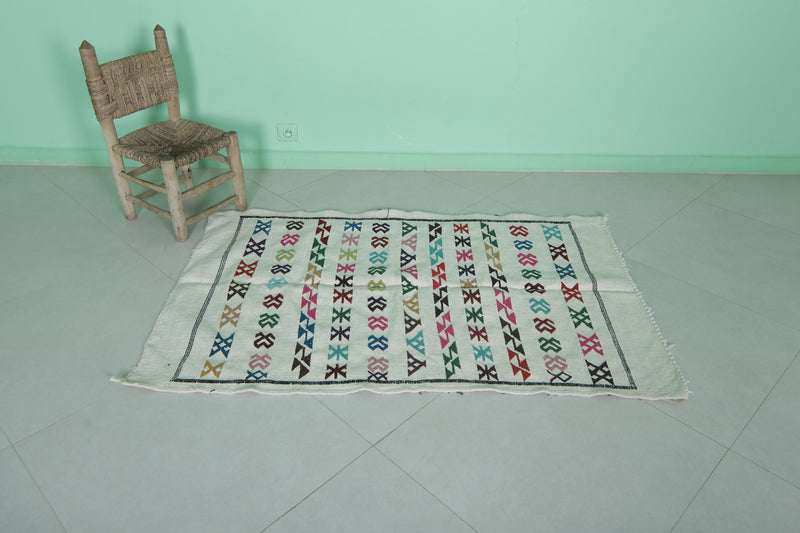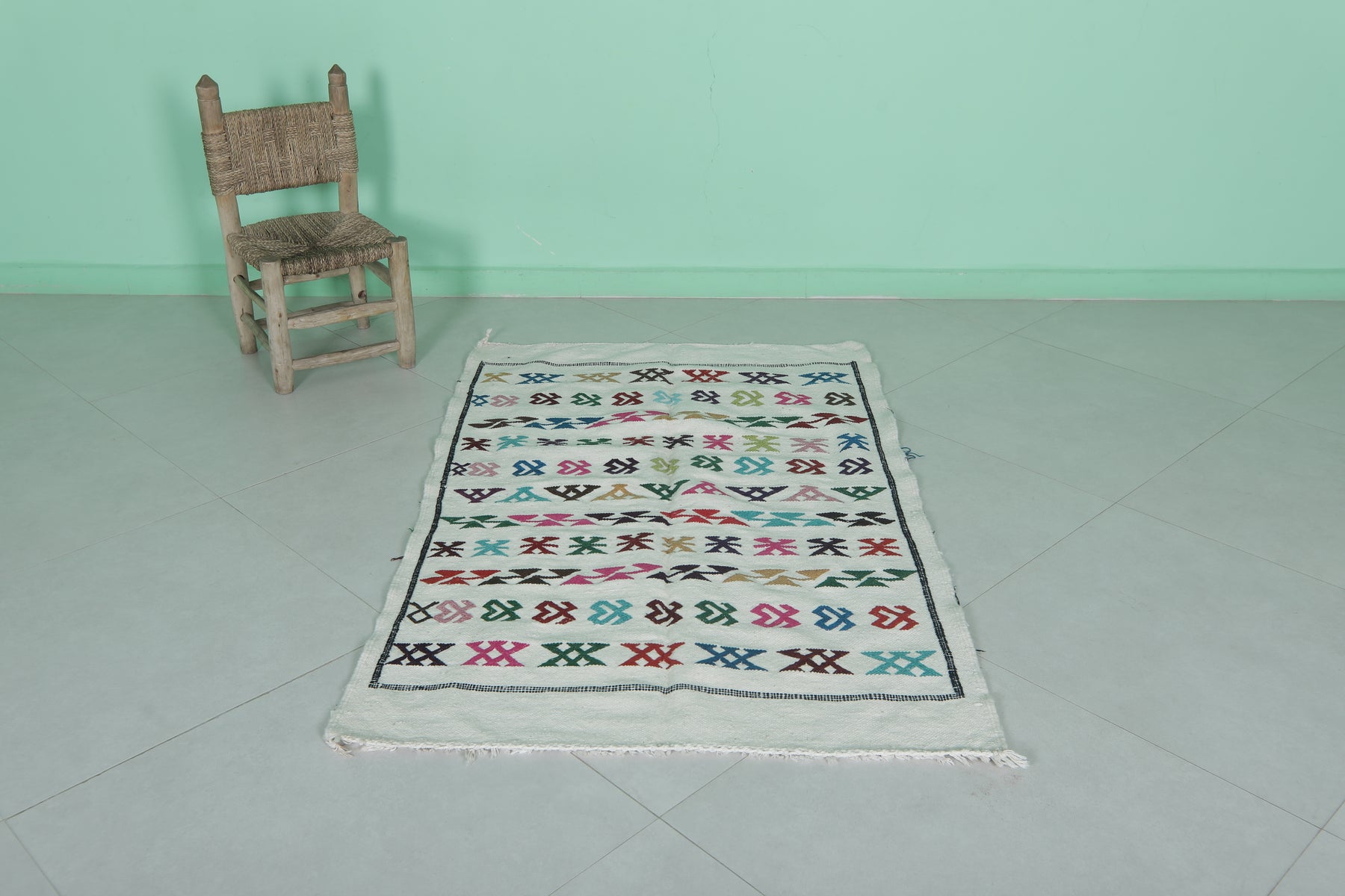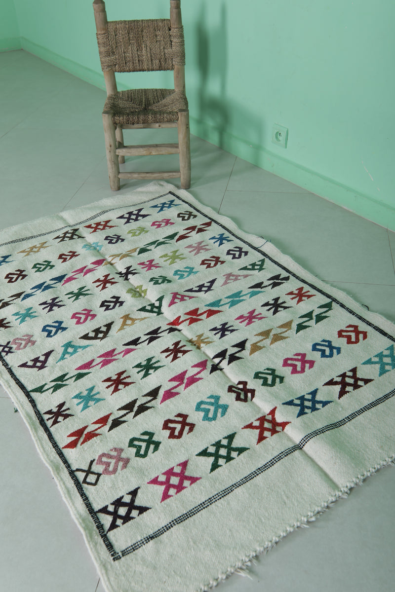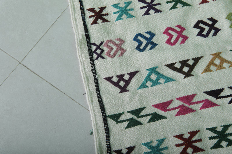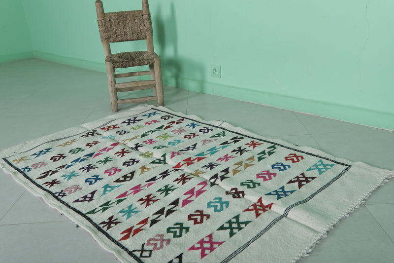 White Moroccan Rug - Handwoven Colorful Patterns - 3.1x4.9 ft