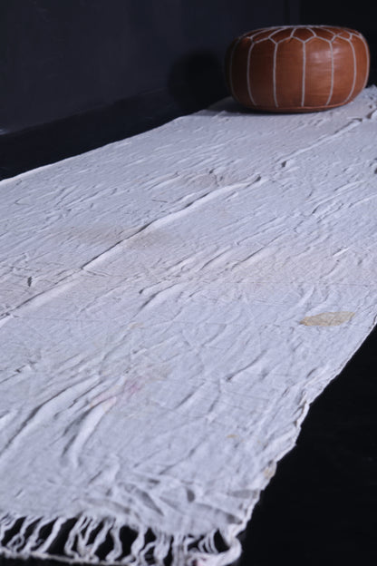 Vintage White Moroccan Runner Rug – 4.2 FT X 12.4 FT