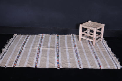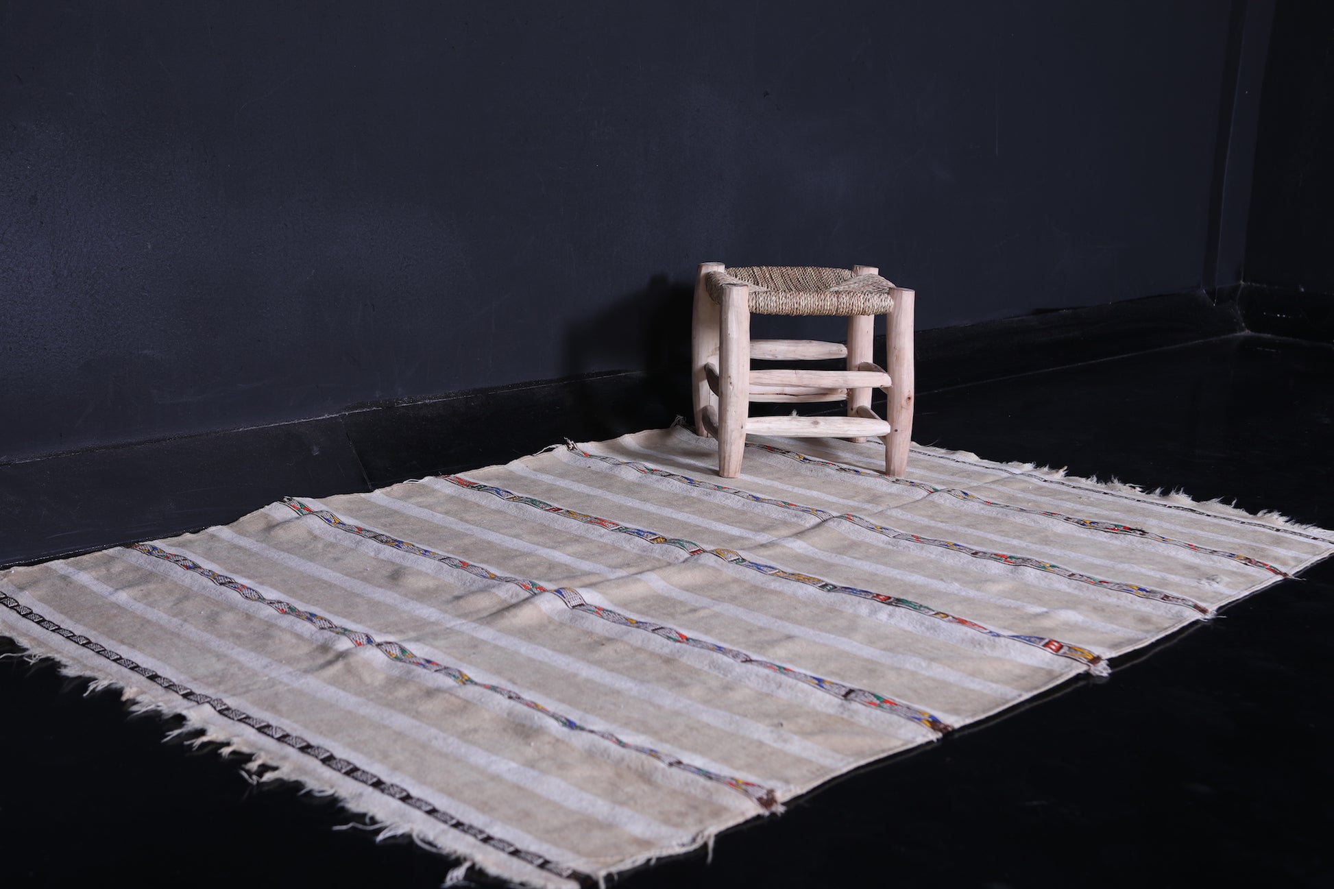 Traditional Kilim Rug 3.8 x 5.6 FT - Handwoven Ivory Stripes - moroccan rug