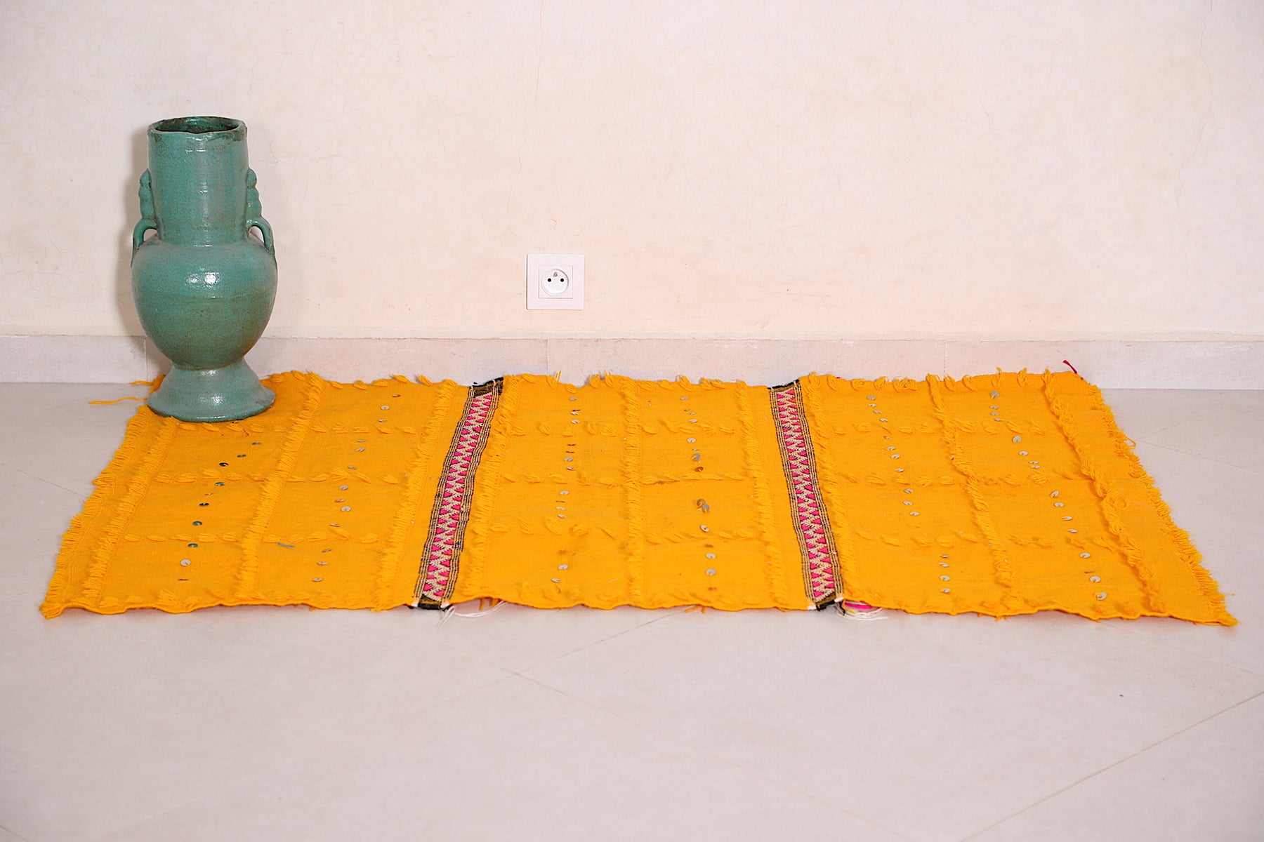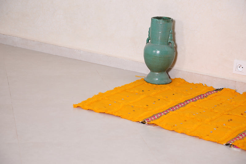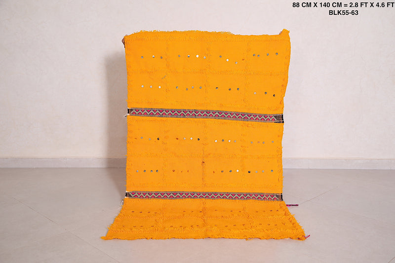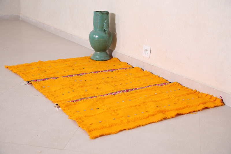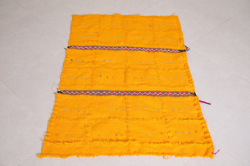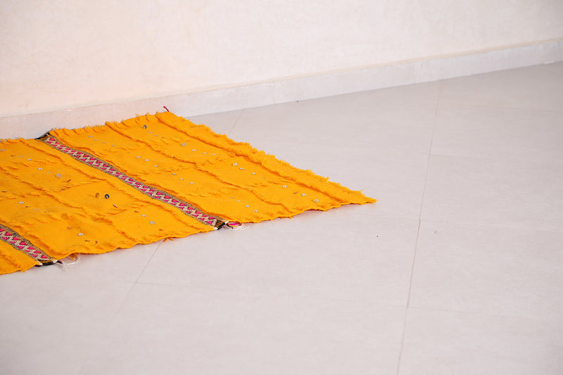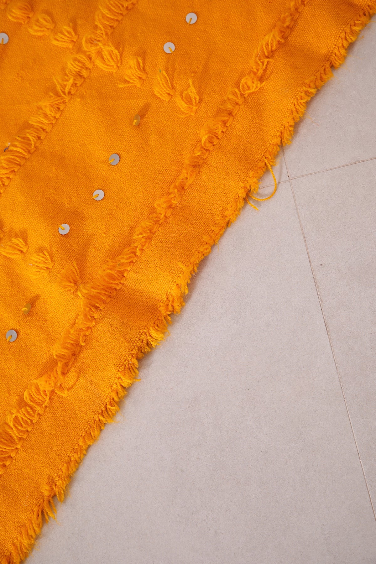 Yellow Handira - Moroccan Wedding Blanket | 2.8 FT x 4.6 FT - Handwoven Kilim