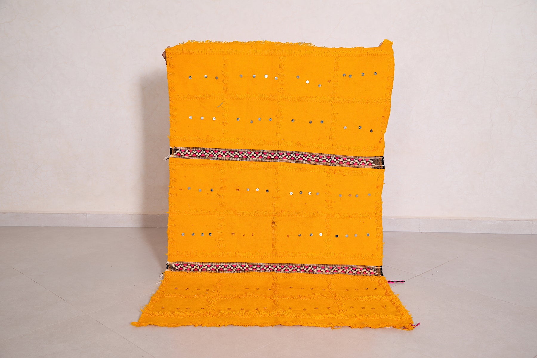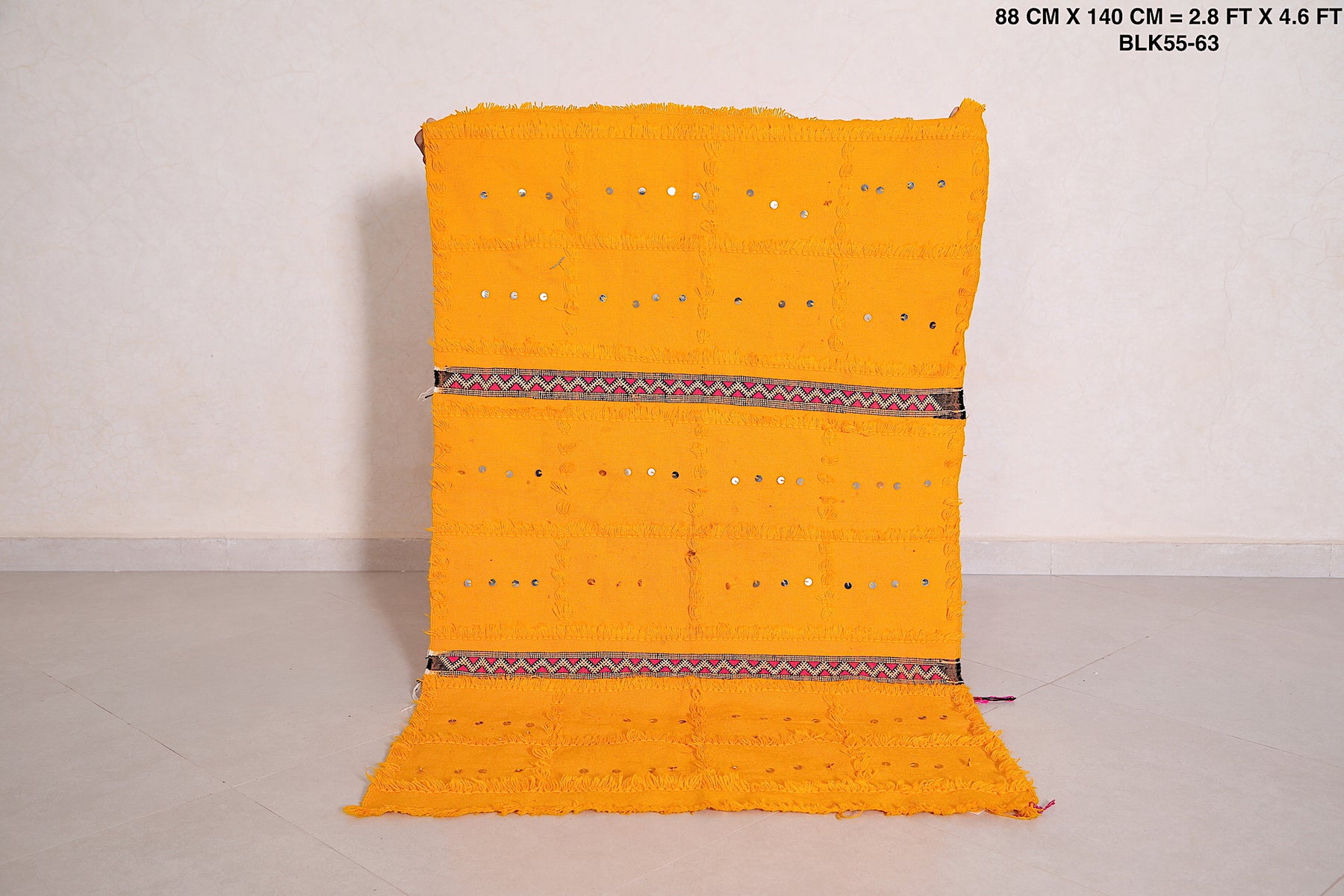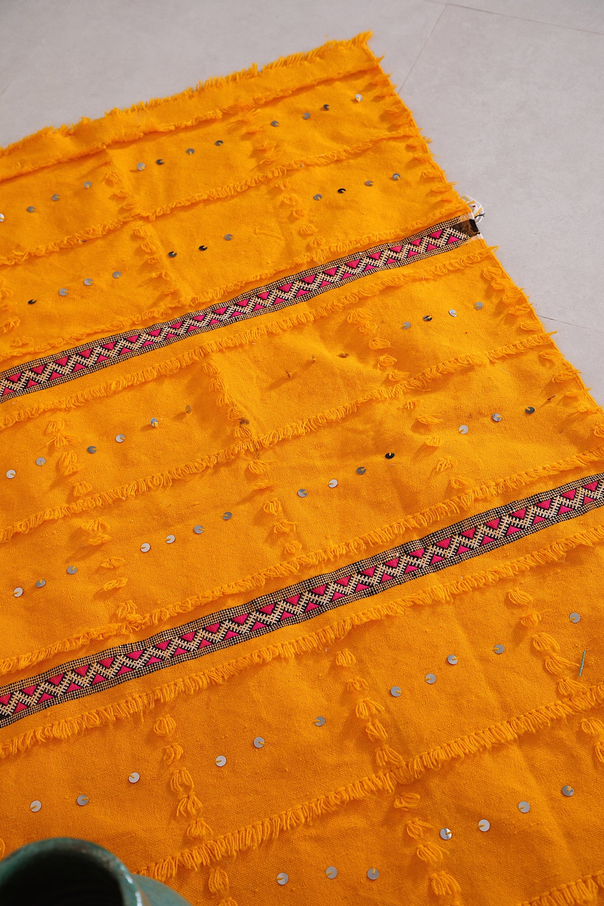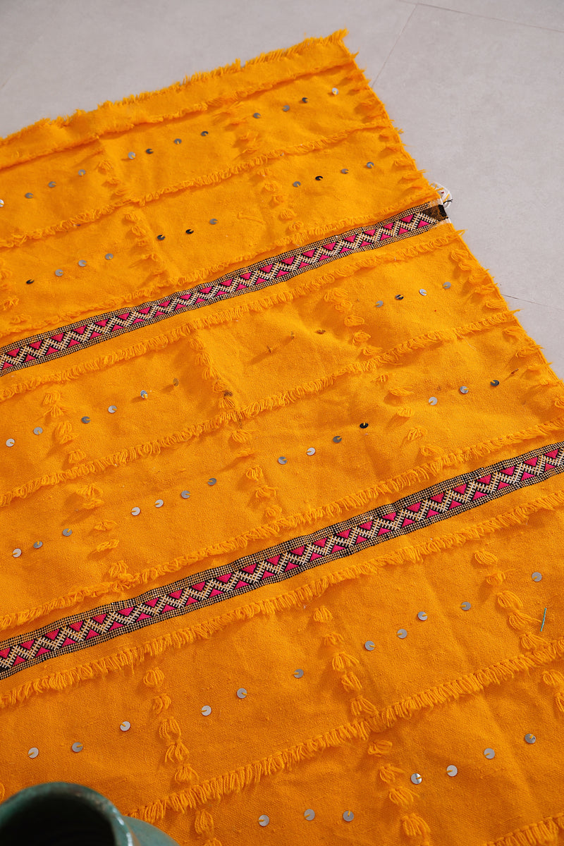 Yellow Handira - Moroccan Wedding Blanket | 2.8 FT x 4.6 FT