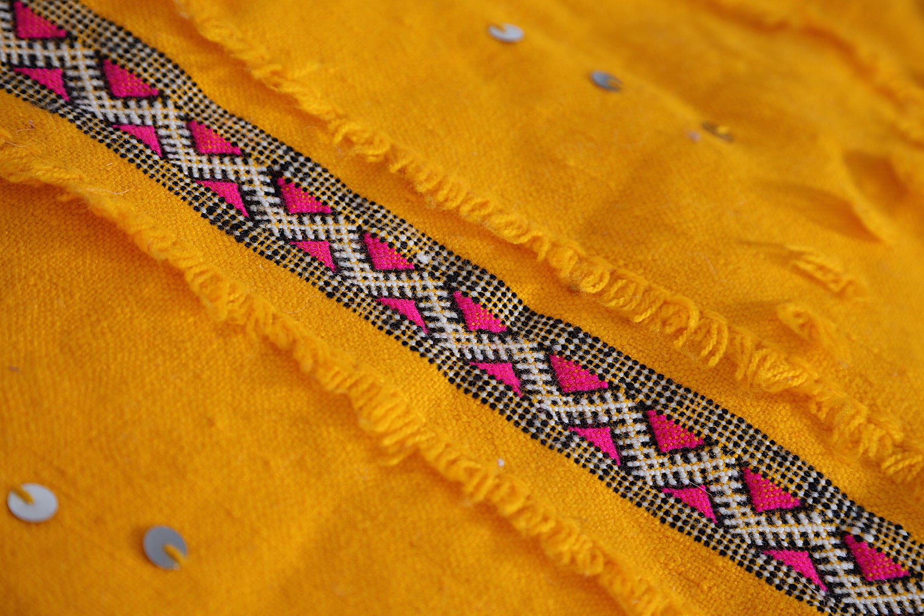 • Handcrafted from vivid yellow wool by skilled Moroccan artisans.